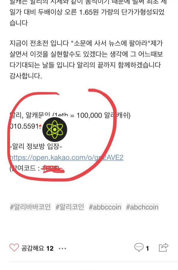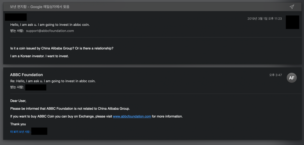 (번역: 이거 중국 알리바바그룹에서 발행한 코인이요? 아니면 관계있니?